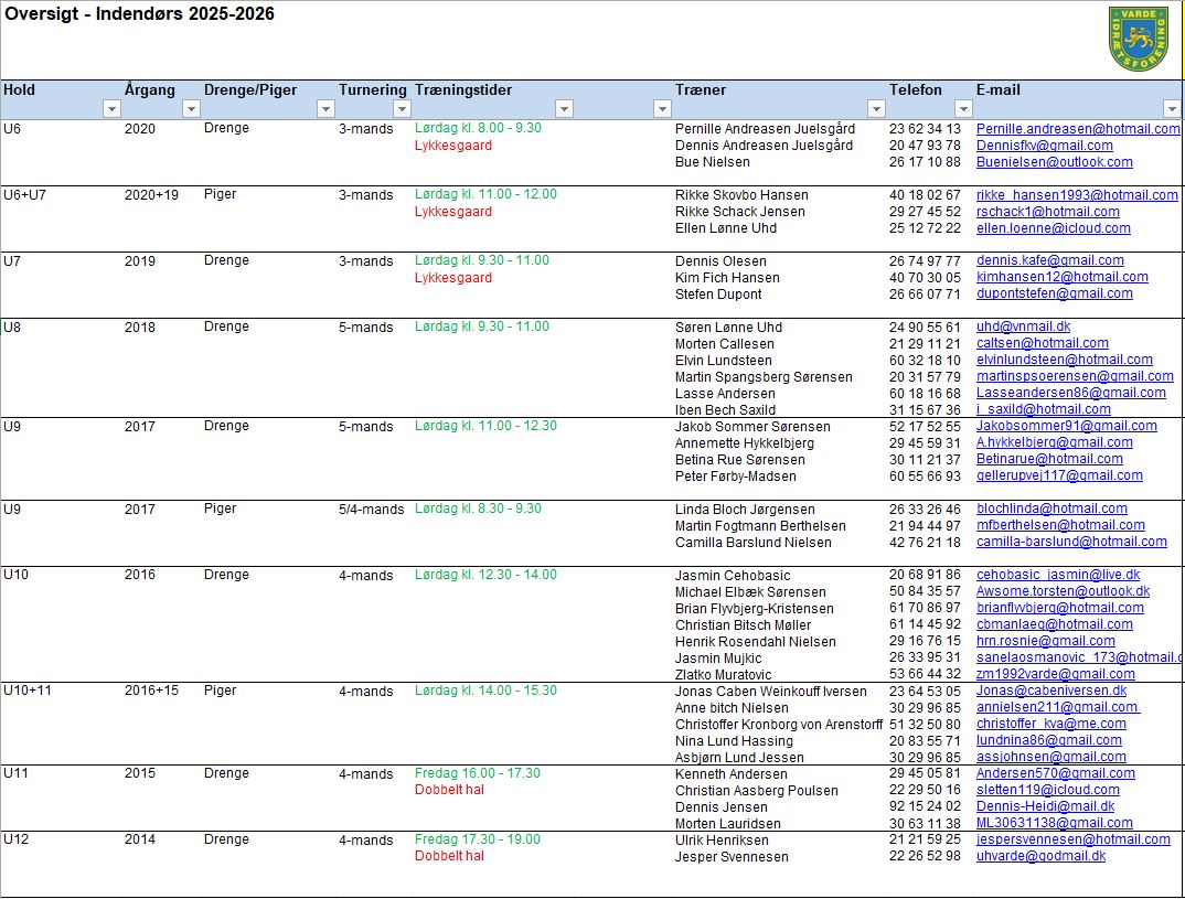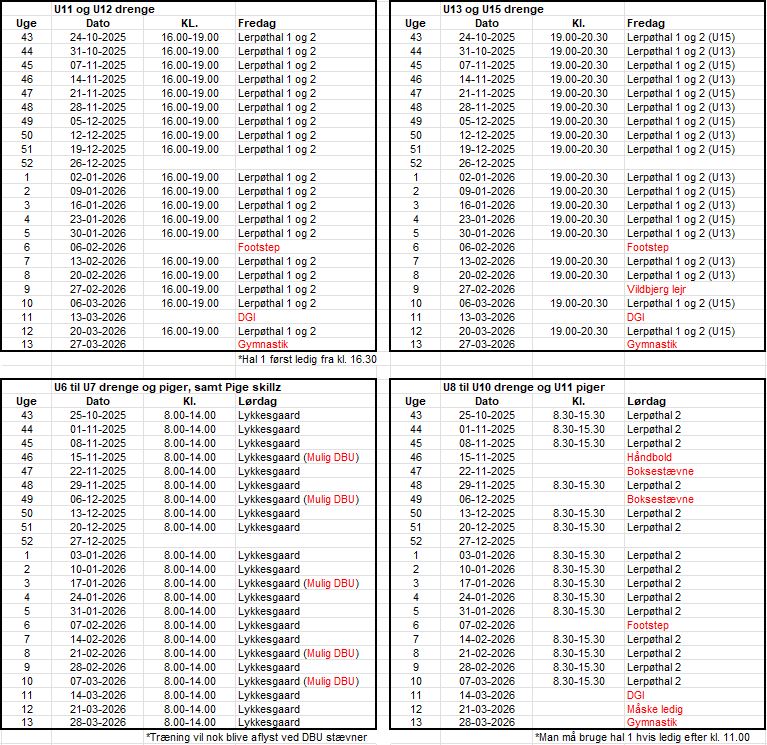Indendørssæsonen går fra uge 43 og til og med uge 13 næste år, dog med undtagelse af uge 52.